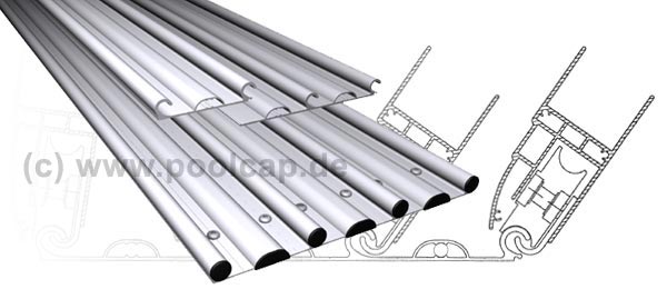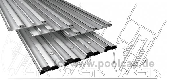 Um eine permanente Windsicherung zu gewährleisten, ist in der gesamten Länge der Laufschiene eine Rille eingearbeitet. Darin laufen je Segment 4 Sturmschutzanker. Deshalb steht jedes Segment der Schwimmbad-Überdachung in allen Positionen sicher vor plötzlich aufkommenden Winden und kann somit keinen Schaden verursachen.